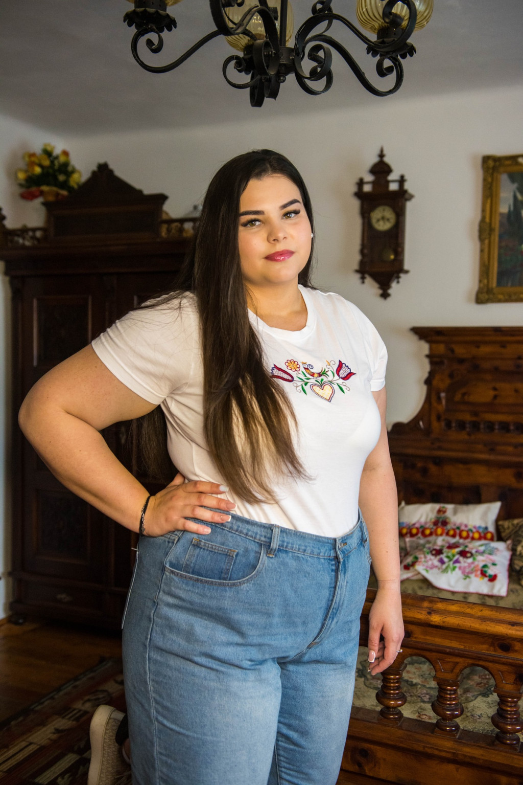 UTOLSÓ DARABOK! Nagy méret 3XL! Az eladásra kínált póló FEKETE, a képen a hölgy fehérben látható! Csodaszép Rábaközi motívumokkal hímzett pólók!